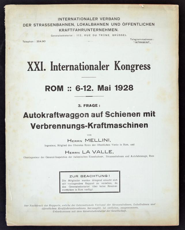 1928 XXI. Internationaler Kongress: Autokraftwaggon auf Schienen mit Verbrennungs-Kraftmaschinen, pp.:43+12, 27x21cm