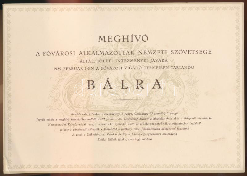 1929 A Fővárosi Alkalmazottak Nemzeti Szövetségének báljára szóló dísz...