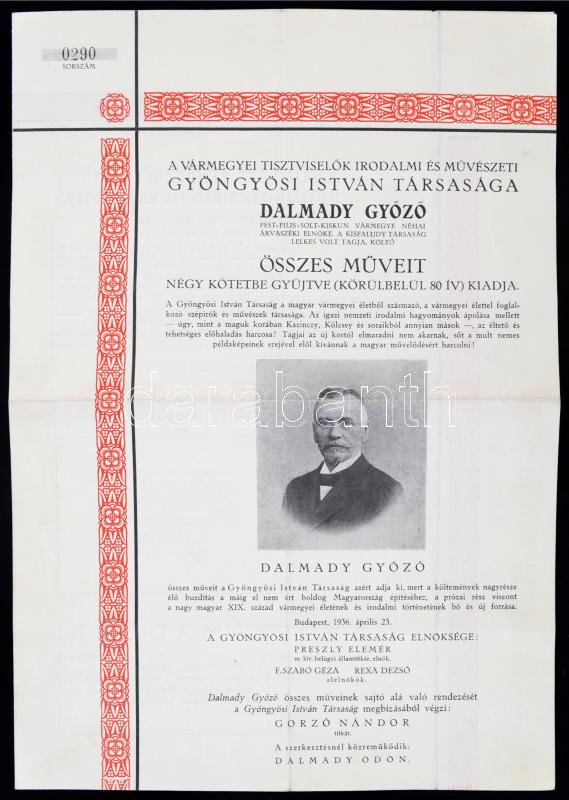 https://www.darabanth.com/en/262-Online-auction/262.0/Other-collectibles/Printed-Materials~20/1936-Gyujtoi-elofizetoi-iv-Dalmady-Gyozo-muveinek-negykotetes-kiadasara-Kitoltetlen-~II1277232
