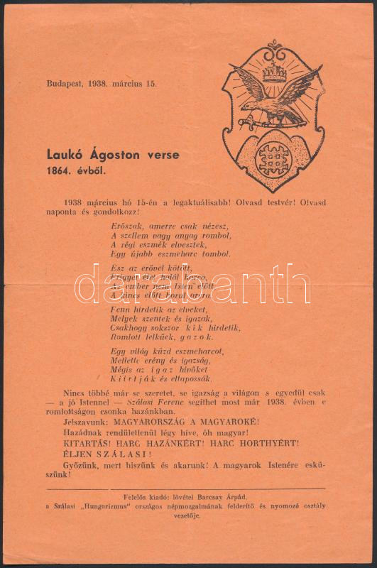 https://www.darabanth.com/en/262-Online-auction/262.0/Other-collectibles/Printed-Materials~20/1938-Hungarista-nyomtatvany-propaganda-vers-Szalasiert-Horthyert~II1299181