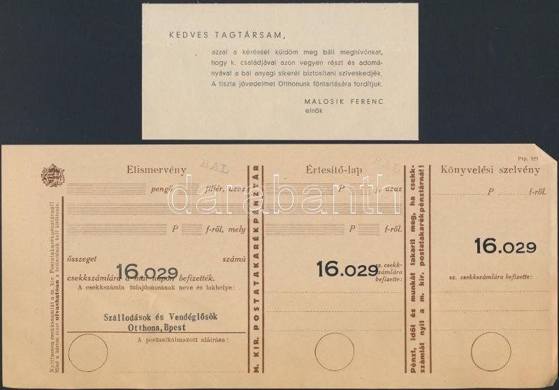 1941 A Budapesti Szállodások és Vendéglősök bál meghívó+ 2db nyomtatvá...