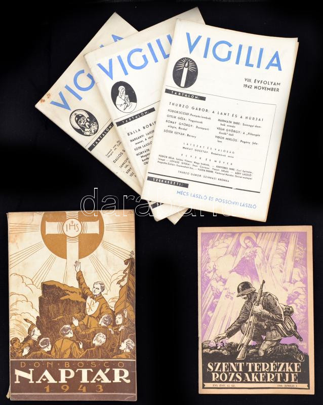 1942-44 Keresztény folyóiratok a világháború idejéből: a Vigilia három... https://www.darabanth.com/en/262-Online-auction/262.0/Other-collectibles/Printed-Materials~20/1942-44-Kereszteny-folyoiratok-a-vilaghaboru-idejebol-a-Vigilia-harom-szama-a-Szent-Tere~II1280000