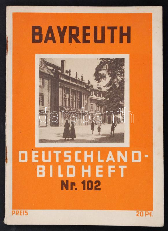 Description: Bayreuth, die Stadt Richard Wagners. Berlin, Universum-Verlagsanstalt (Deutschland-Bildheft 102.). Ismertető füzet, rengeteg képpel, papírkötésben, jó állapotban.