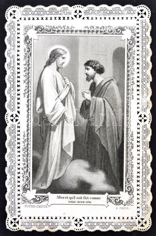 cca 1890 Csipke szentkép szép állapotban, 11x7cm