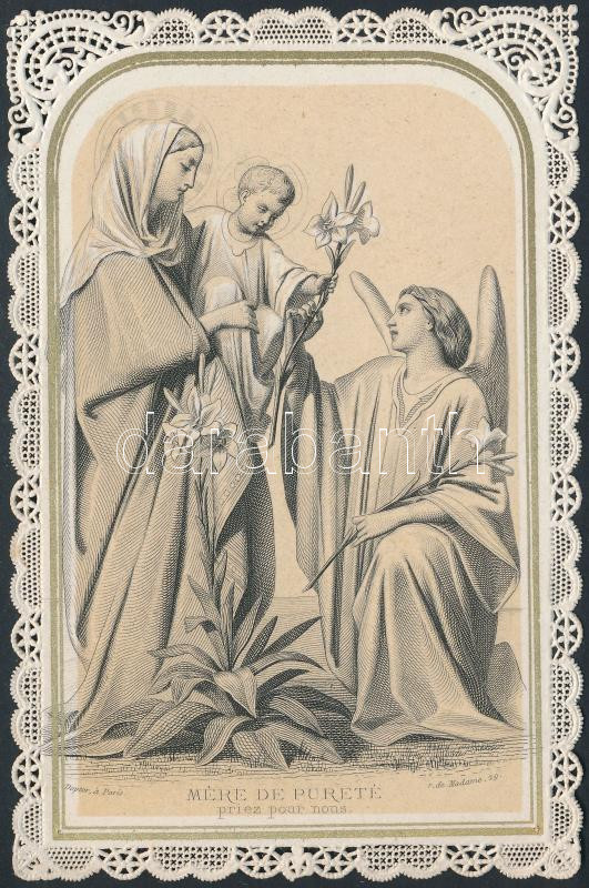 cca 1890 Csipke szentkép szép állapotban, 11x7cm