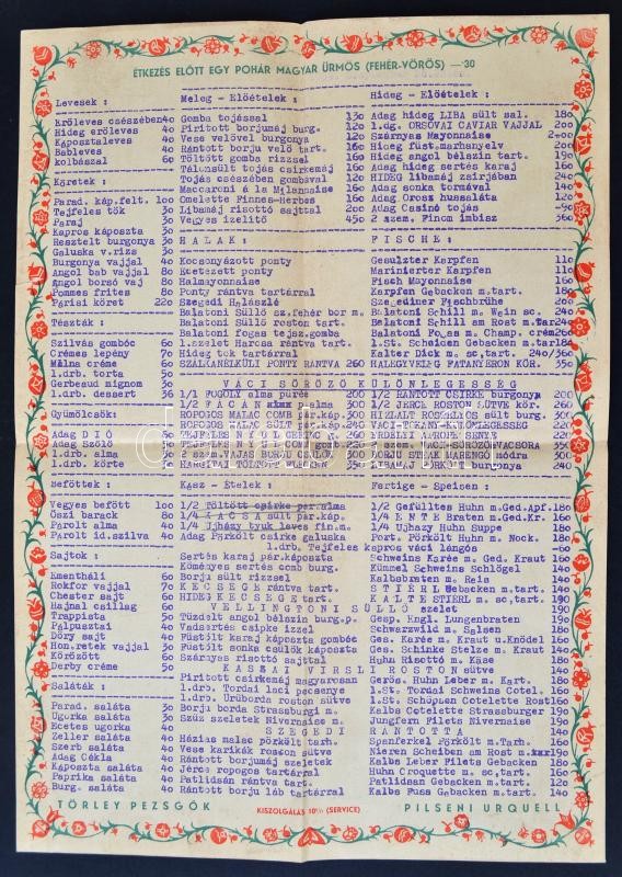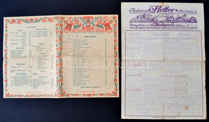 cca 1920-1940 A Ketter étterem, valamint a Váci uccai söröző és étterem étlapjai. A hajtások mentén szakadozottak.