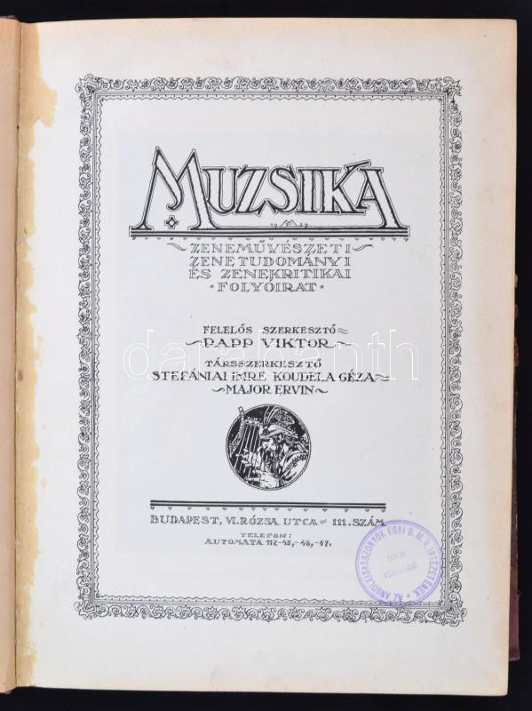 cca 1929-30 Muzsika, zeneművészeti, zenetudományi és zenekritikai foly... https://www.darabanth.com/en/262-Online-auction/262.0/Other-collectibles/Printed-Materials~20/cca-1929-30-Muzsika-zenemuveszeti-zenetudomanyi-es-zenekritikai-folyoirat-SzerkPapp-Vikto~II1251739