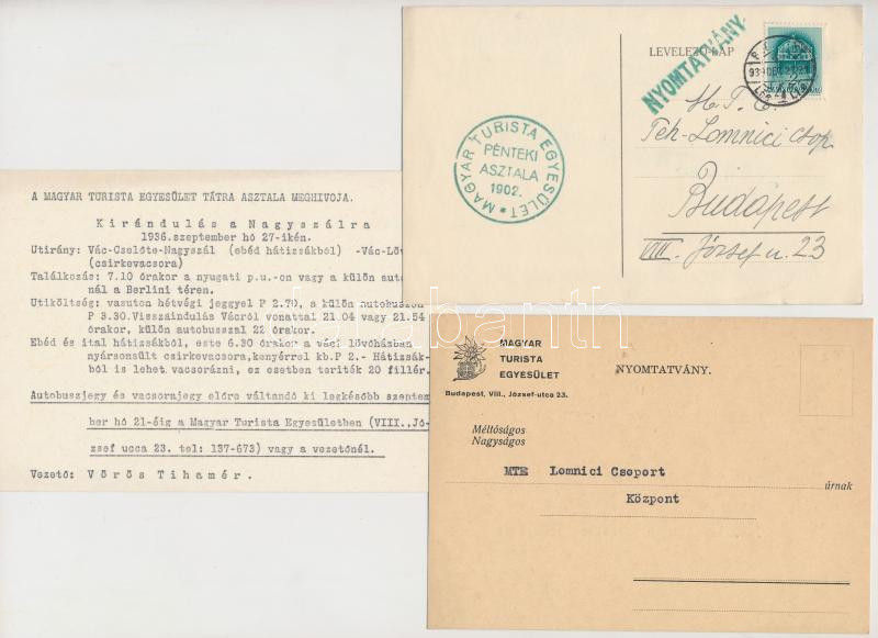 cca 1930 Magyar Turista Egylet 3 különböző meghívó levelezőlap
