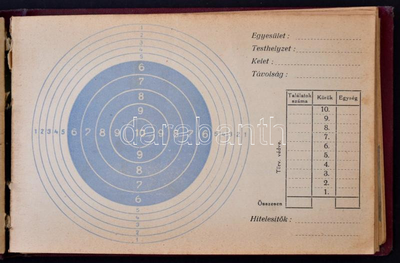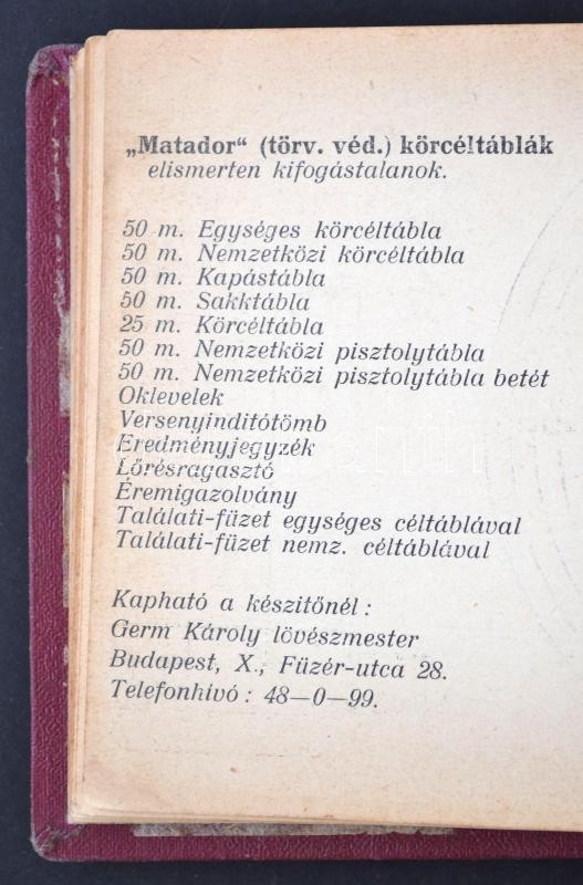 cca 1930 "Matador" körcéltáblák, lőlapok. Korabeli, kopottas vászonkötésű füzetben.