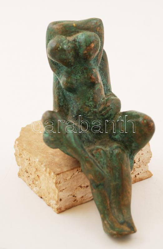 Szabolcs Péter (1942- ): Ölelkezők, bronz szobor terméskő talapzaton, jelzett, m: 9,5 cm