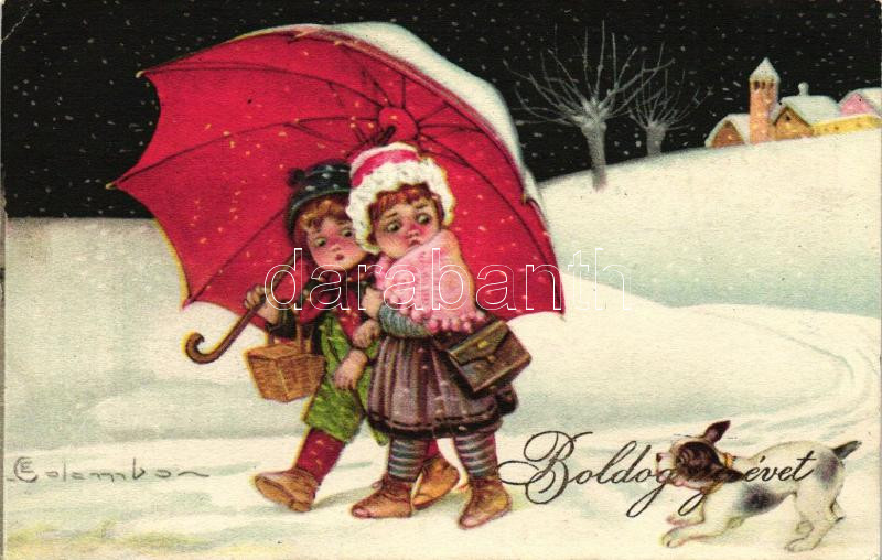 'Boldog Újévet' / New Year, Italian art postcard, Excelsior No. 3001-4, s: E. Colombo (EK)