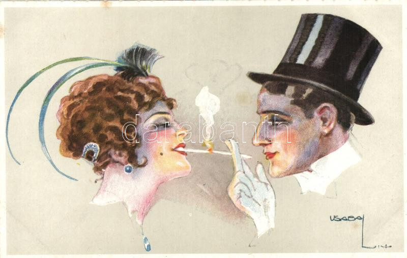 Italian art postcard. Smoking couple, W.S.S.B. 6522/2., s: Usabal