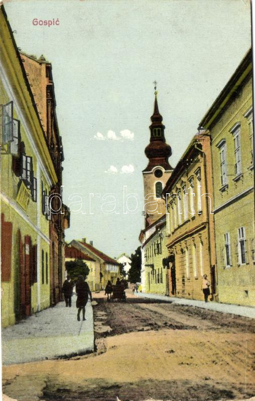 Gospic, utca, templom / street, church (kis szakadás / small tear)
