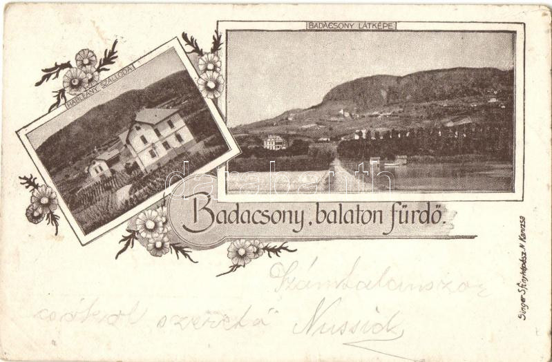 1899 Badacsony, látkép, Hableány Szálloda, floral (EK)