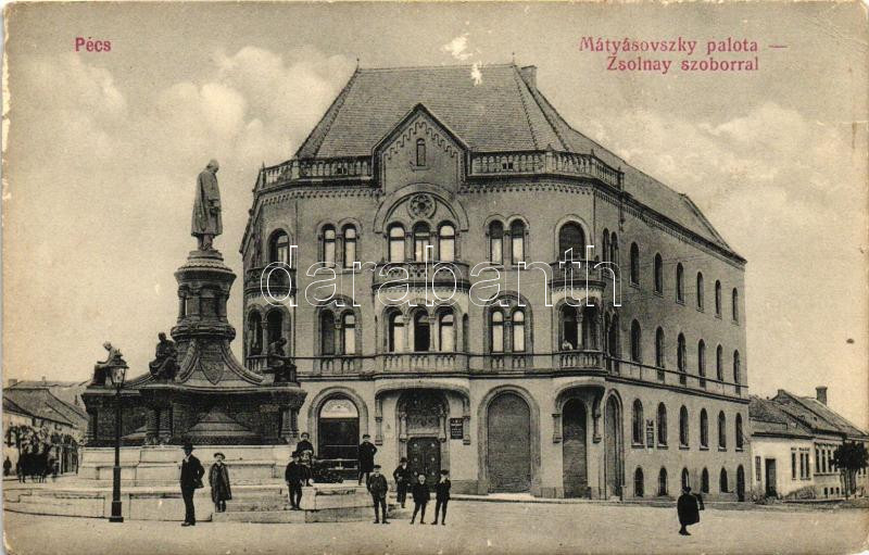 Pécs, Mátyásovszky palota, Zsolnay szobor, kiadja a Schmeiszl és Kálmá...