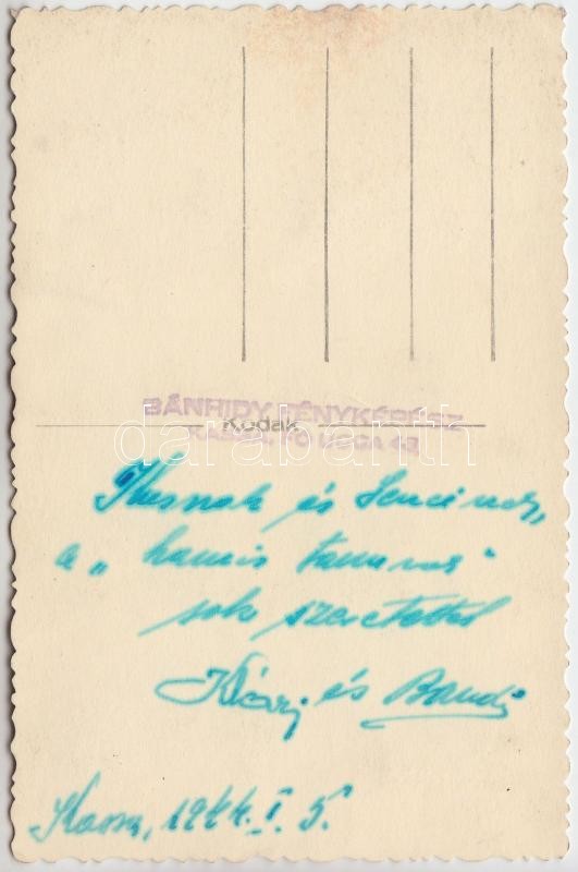 1944 Esküvői fotó, katona a feleségével, Bánhidy fényképész, Kassa / s...