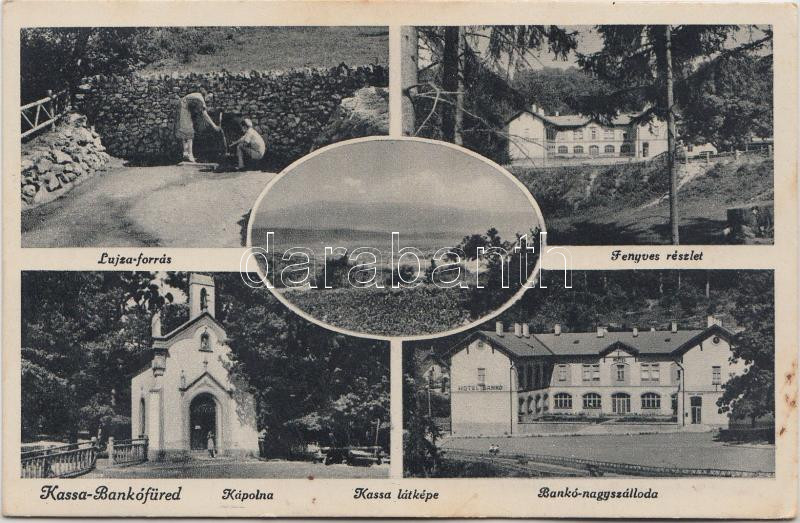 Kassa, Bankófüred, Lujza forrás, Bankó nagyszálloda, kápolna / source, hotel, chapel