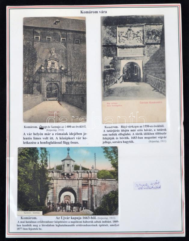 https://www.darabanth.com/en/262-Online-auction/262.0/Postcards/Slovakia~100026/Komarom-Komarno-var-reszletek-regi--oreg-es-Uj-varkapu-castle-gates--3-db-regi-kep~II1271798