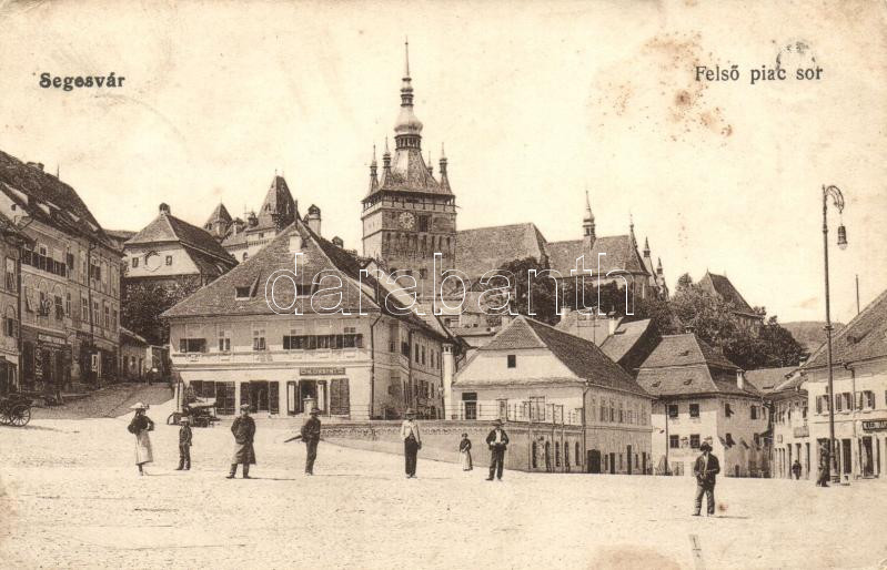 Segesvár, Sighisoara; Felső piac sor, H. Girscht üzlete / square, shop...