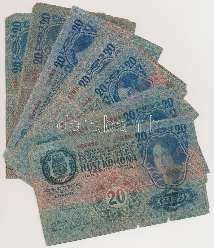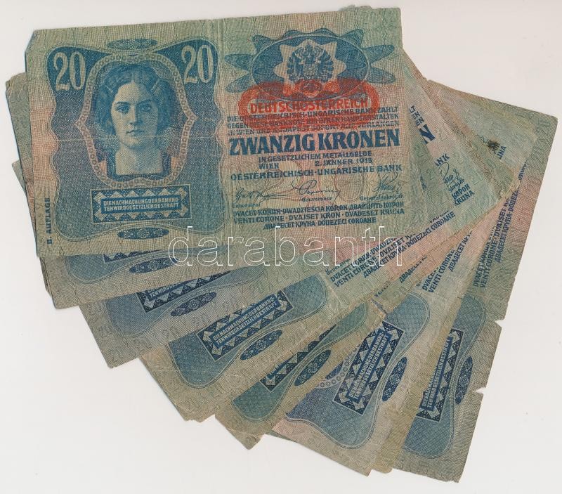 https://www.darabanth.com/en/263-Online-auction/263.0/Numismatics/Hungarian-Banknotes~300007/1913-20K-15x-benne-tobb-felulbelyegzett-TIII-III-IV~II1313135