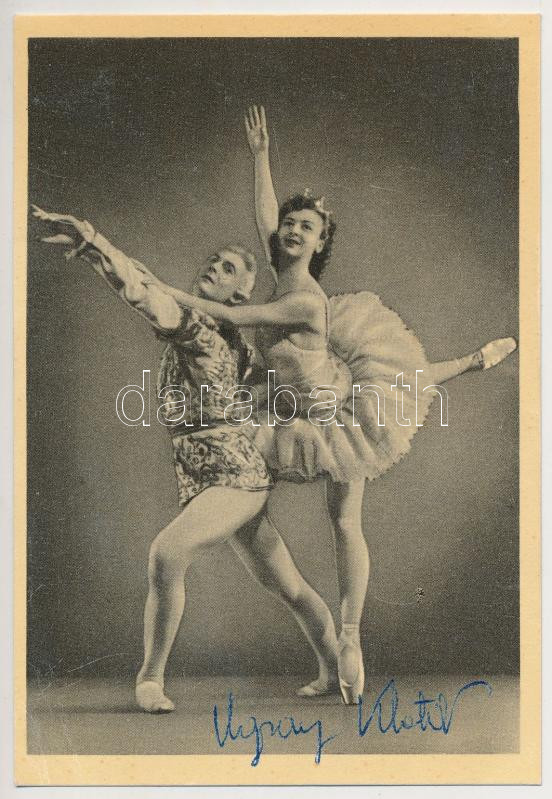 Ugray Klotild (1932- ) táncosnő, balettmester aláírása őt ábrázoló levelezőlapon