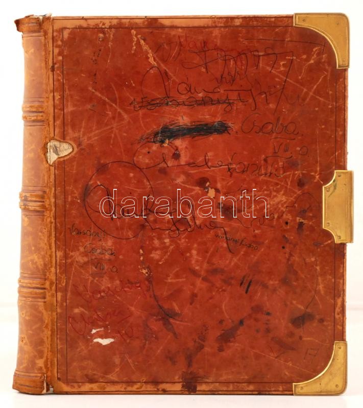 Bőrkötéses, rézveretes füzet, benne német nyelvű naplóval az 1850-es évekből és sok későbbi bejegyzéssel, firkával a a xx. századból