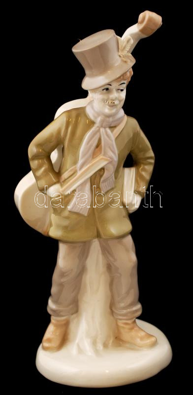 Wagner & Apel Bertram zenész porcelán figura, kézzel festett, jelzett, hibátlan, m:23 cm