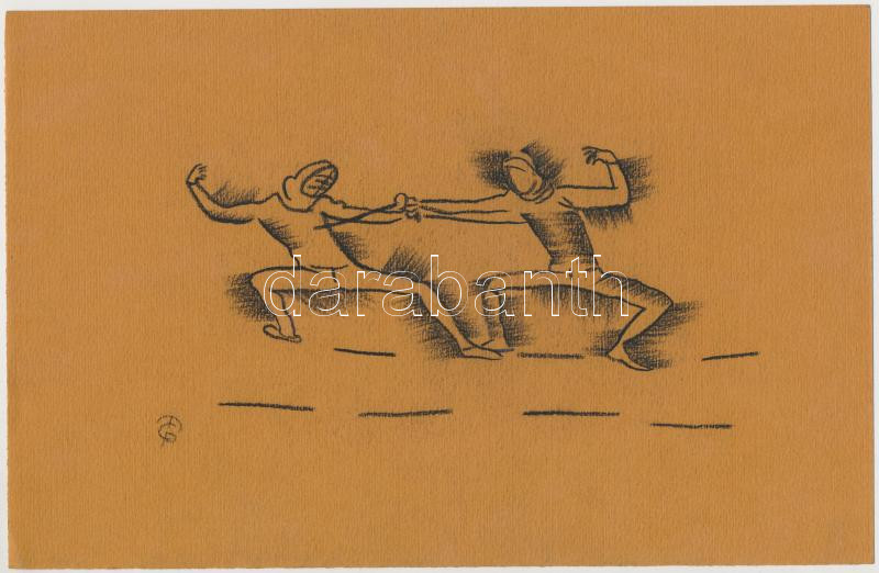 MCP jelzéssel: Vívók. Szén, papír, jelzett, 16x25 cm