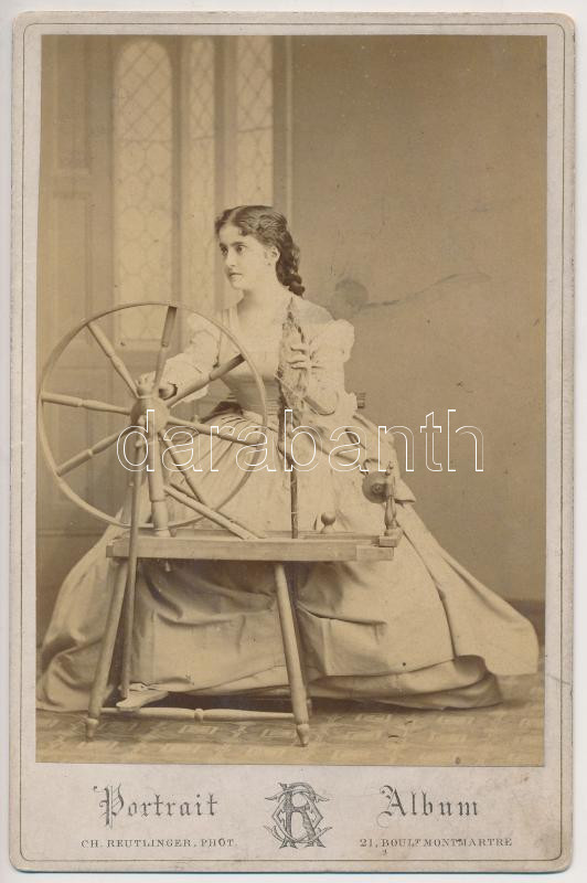 Adelina Patti (1843-1919), olasz operaénekesnő,Ch. Reutlinger, Paris fotó: ( Faust: Margit a rokkánál), 16x11cm