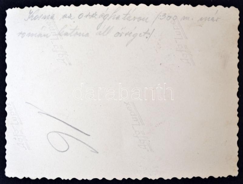 cca 1930 Kosna vasútállomás magyar (orzság) zászlóval, fotó verzón feliratozva, 6x9cm
