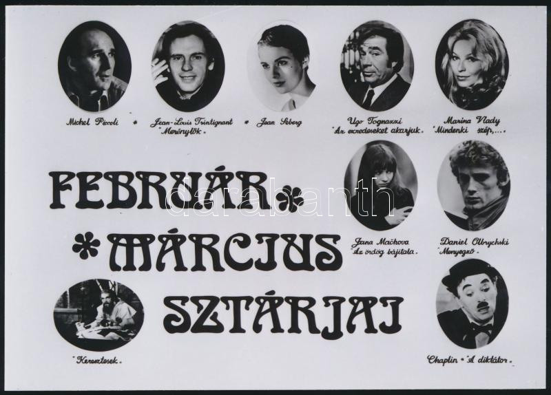 cca 1972 Filmsztárok, a MOKÉP kistablója, a mozik pénztáraiban árusították 6x9 cm-es méretben, korabeli negatívról készült modern nagyítás, 12x17 cm