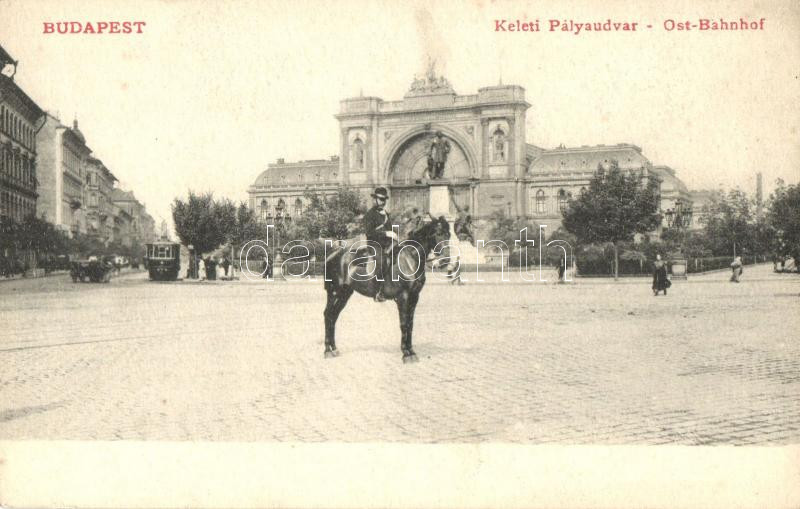 Budapest VII. Keleti pályaudvar, lovas csendőr, villamos (Rb)
