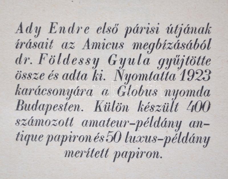Ady Endre: Levelek Párisból. (Összegyűjtötte Földessy Gyula) Bp., 1924...