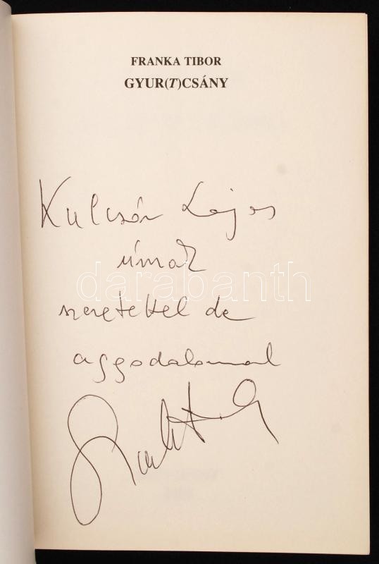 https://www.darabanth.com/en/264-Online-auction/264.0/Books/Books-Other-rarities~40/Franka-Tibor-Gyurtcsany-Kiadoi-papirkotesben-Bp-2005-magankiadas-Dedikalt-peldany~II1313839