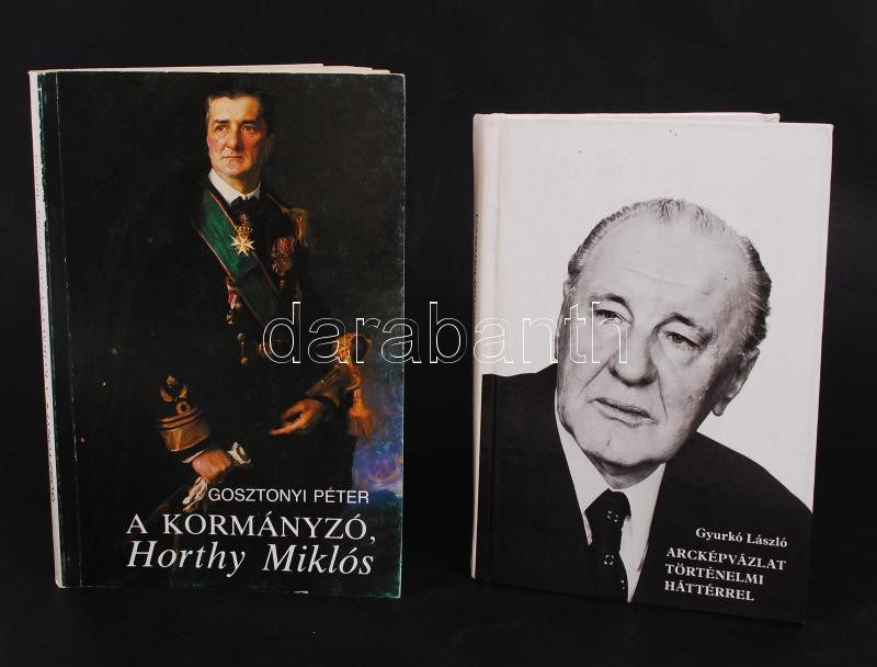 Gosztonyi Péter: A kormányzó, Horthy Miklós. Bp., 1990, Téka Könyvkiadó. Papírkötés, jó állapotban; valamint Gyurkó László: Arcképvázlat történelmi háttérrel. Bp., 1982, Magvető Kiadó. Kartonált, kissé kopottas állapotban.
