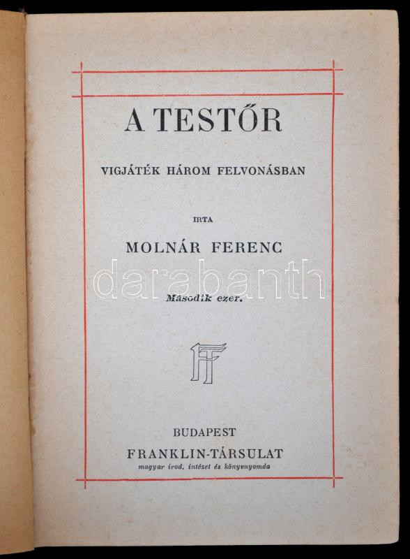 https://www.darabanth.com/en/264-Online-auction/264.0/Books/Books-Other-rarities~40/Molnar-Ferenc-A-testor-Vigjatek-harom-felvonasban--Bp-1912-Franklin-178-p-Korabeli-mi~II1320208