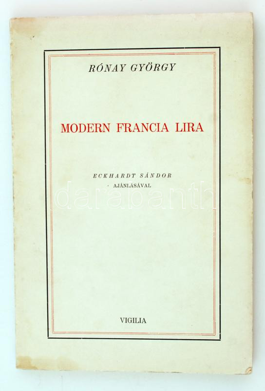 https://www.darabanth.com/en/264-Online-auction/264.0/Books/Books-Other-rarities~40/Ronay-Gyorgy-Modern-francia-lira-Eckhardt-Sandor-ajanlasaval-Bp-1939-Vigilia-139-p-Kia~II1319847