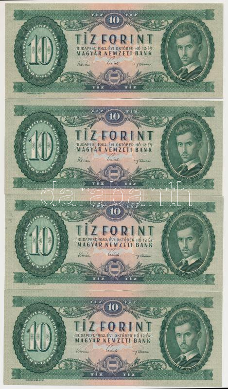 1962. 10Ft (4x) sorszámkövetők T:I-