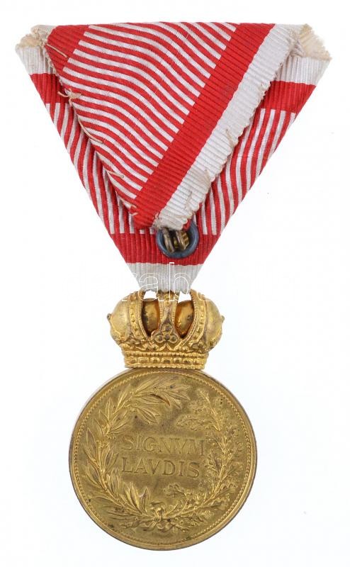 Hungary 1890. "Medal for Military Merit (Signum Laudis) on wartime ribbon" gold plated Br decoration with ribbon C:XF