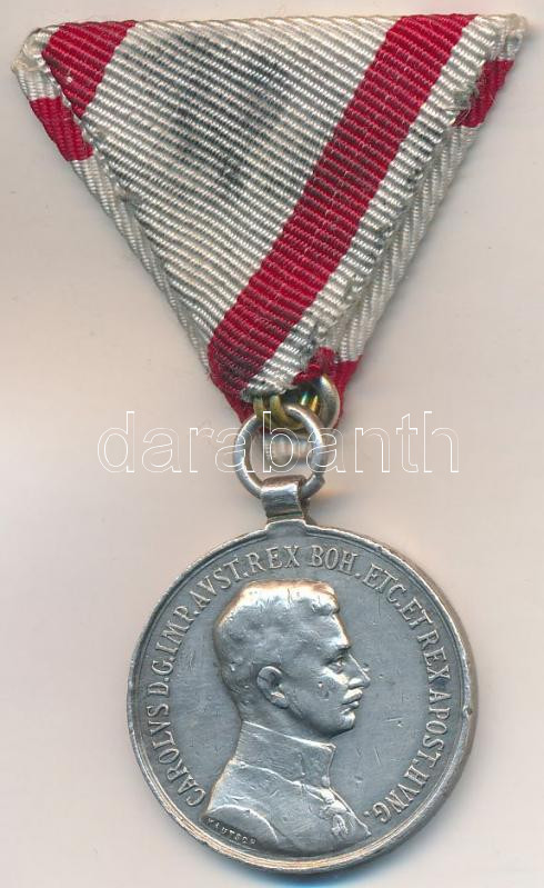 1917. "Károly Ezüst Vitézségi Érem II. osztály" Ag kitüntetés peremen ... https://www.darabanth.com/en/264-Online-auction/264.0/Numismatics/Military~300013/1917-Karoly-Ezust-Vitezsegi-Erem-II-osztaly-Ag-kituntetes-peremen-A-jelzessel-nem-er~II1318571