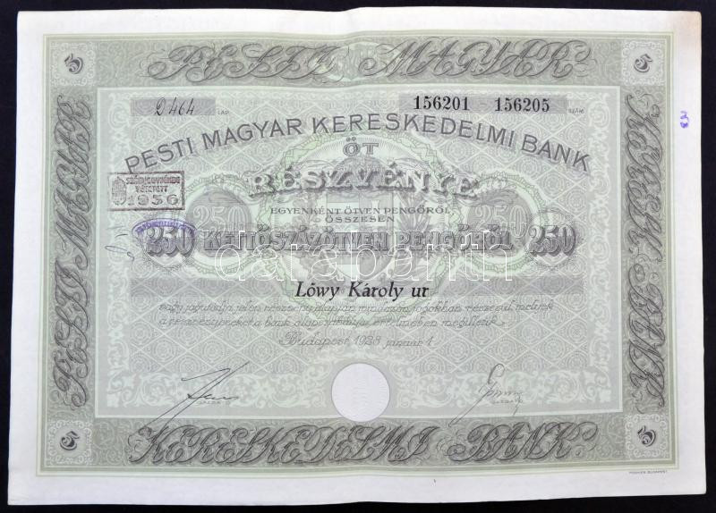 https://www.darabanth.com/en/264-Online-auction/264.0/Numismatics/Shares-and-Tickets~300004/Budapest-1928-Pesti-Magyar-Kereskedelmi-Bank-5-reszvenye-egyben-osszesen-250P-rol-szelvenye~II1314473