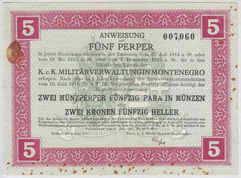 https://www.darabanth.com/en/264-Online-auction/264.0/Numismatics/Worldwide-banknotes~300010/Montenegro-Csaszari-es-Kiralyi-Katonai-Kozigazgatas-1917-5P-TIII-fo--Montenegro-Army-A~II1314080