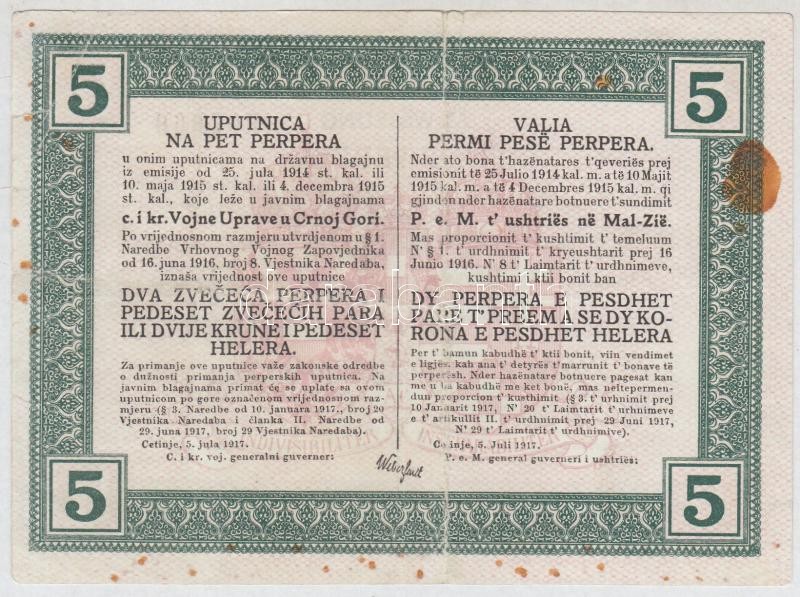 Montenegró / Császári és Királyi Katonai Közigazgatás 1917. 5P T:III fo.