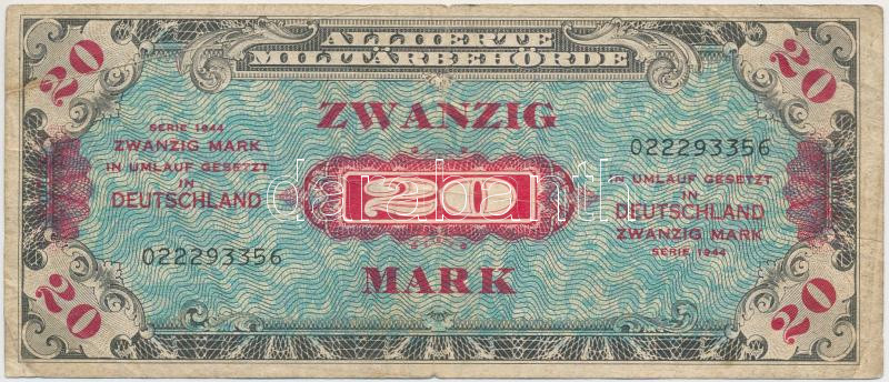 German Third Reich / Allied occupation 1944. 20 Mark nine digit serial C:F