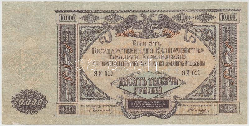 Description: Orosz Polgárháború / Dél-Oroszország / Gyenyikin és Vrangel Hadserege 1919. 10.000R T:III szép papír