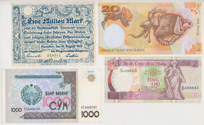 Description: Vegyes: 15db klf magyar és külföldi bankjegy és szükségpénz tétel, közte Pápua Új-Guinea, Málta, Libanon T:I-III