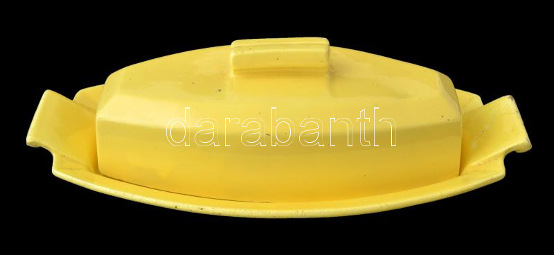 Gránit kerámia sárga vajtartó, kopásnyomokkal, jelzett, 28,5x15x8 cm