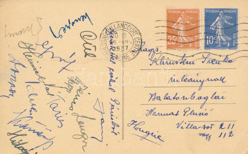 1937 Az olimpia bajnok magyar vízilabda válogatott tagjainak aláírt ké... https://www.darabanth.com/en/264-Online-auction/264.0/Other-collectibles/Autographs~17/1937-Az-olimpia-bajnok-magyar-vizilabda-valogatott-tagjainak-alairt-kepeslapja-Parizsbol-Boz~II1260578