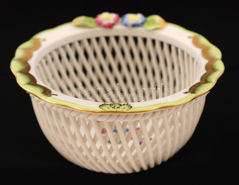 Herendi Viktória mintás áttört tálka, kézzel festett, jelzett, hibátla...