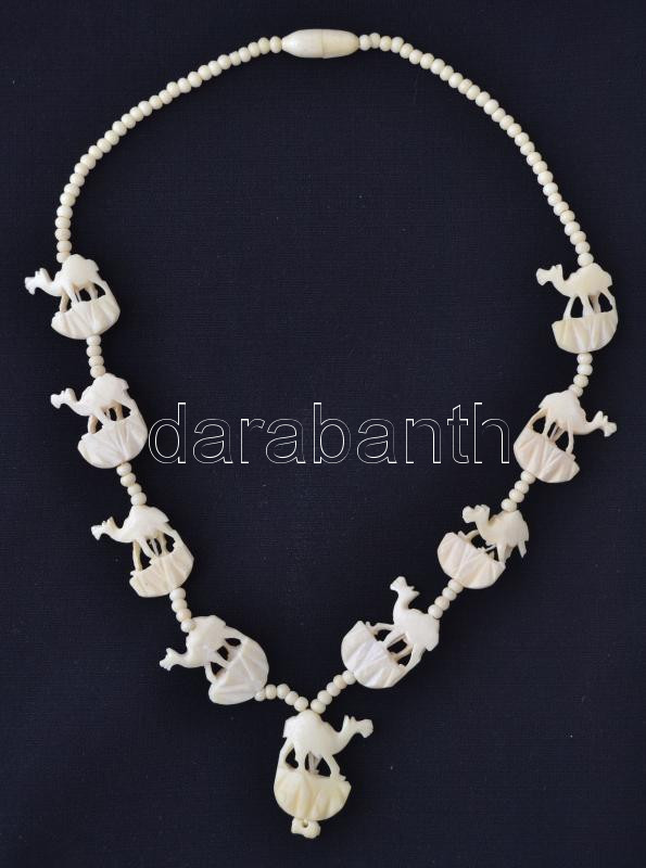 Csont nyaklánc teve motívummal, jó állapotban, h: 50 cm